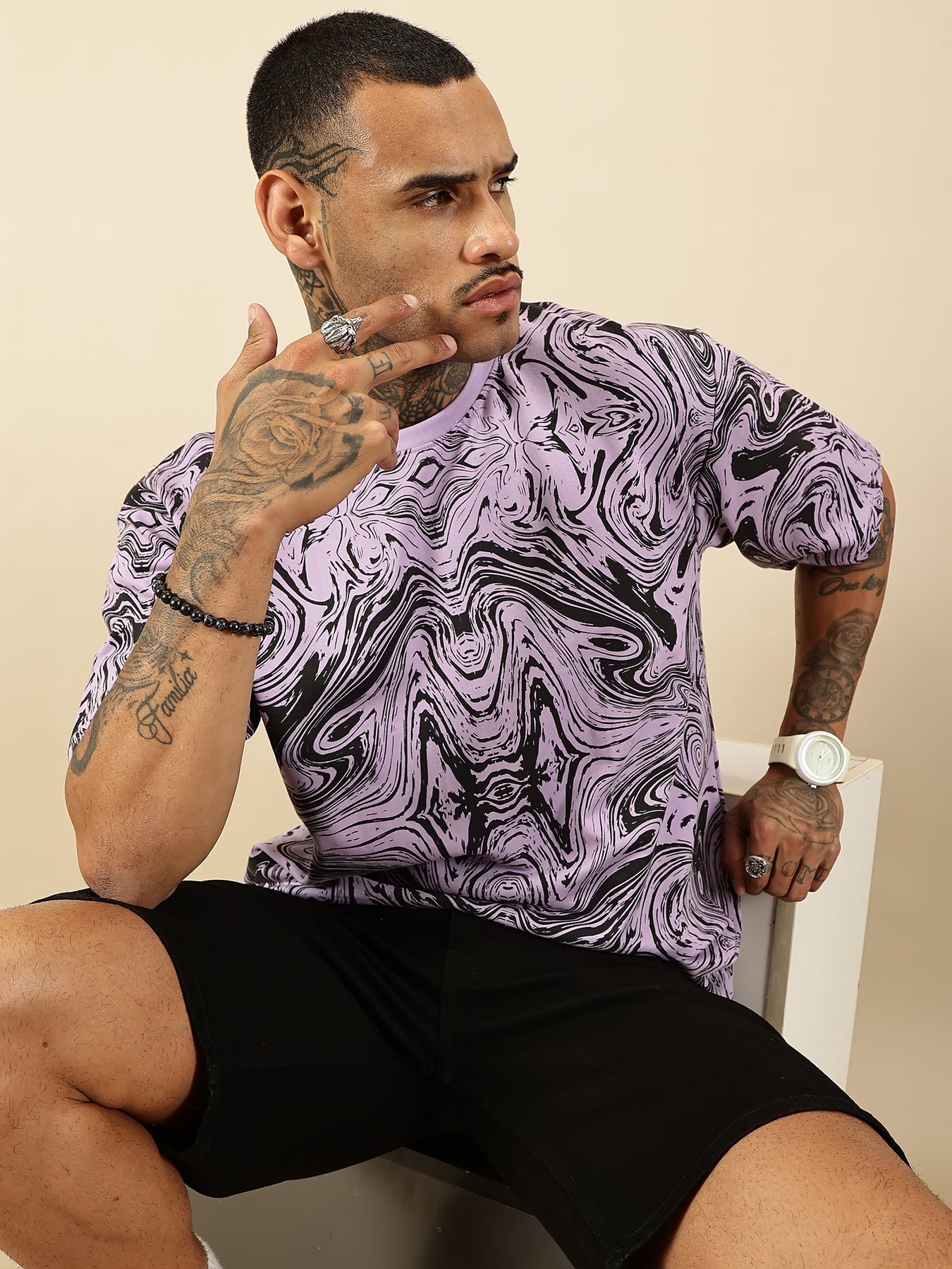 Marble Flux redefines casual wear with its striking abstract marble print, rendered in rich, contrasting tones across premium fabric. The oversized silhouette delivers contemporary comfort without compromising on style, making it an essential layering piece for modern wardrobes. Crafted for durability and everyday versatility, this tee transitions seamlessly from relaxed weekends to styled streetwear looks. The generous fit accommodates various body types while maintaining a refined aesthetic that elevates basic essentials into statement pieces.