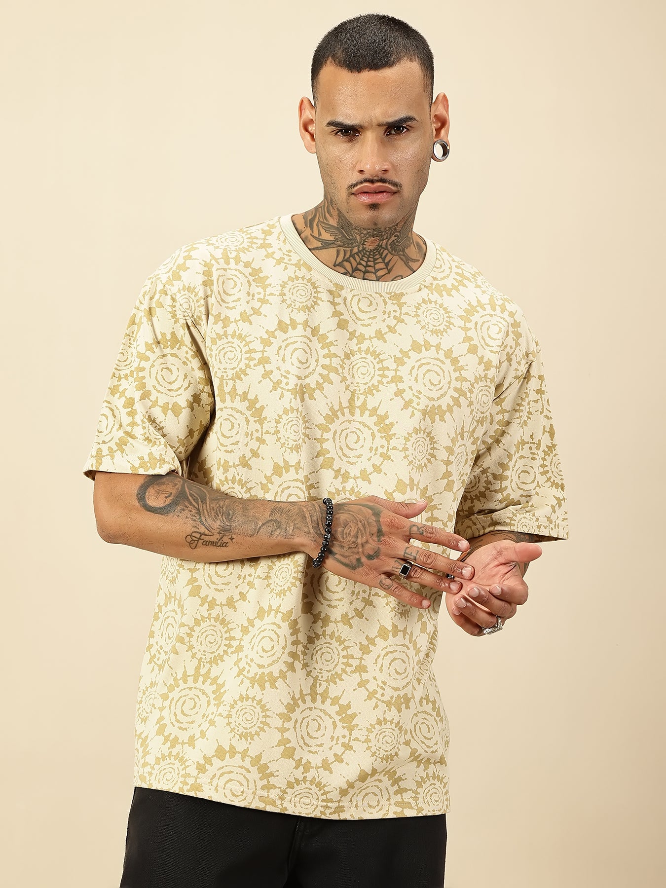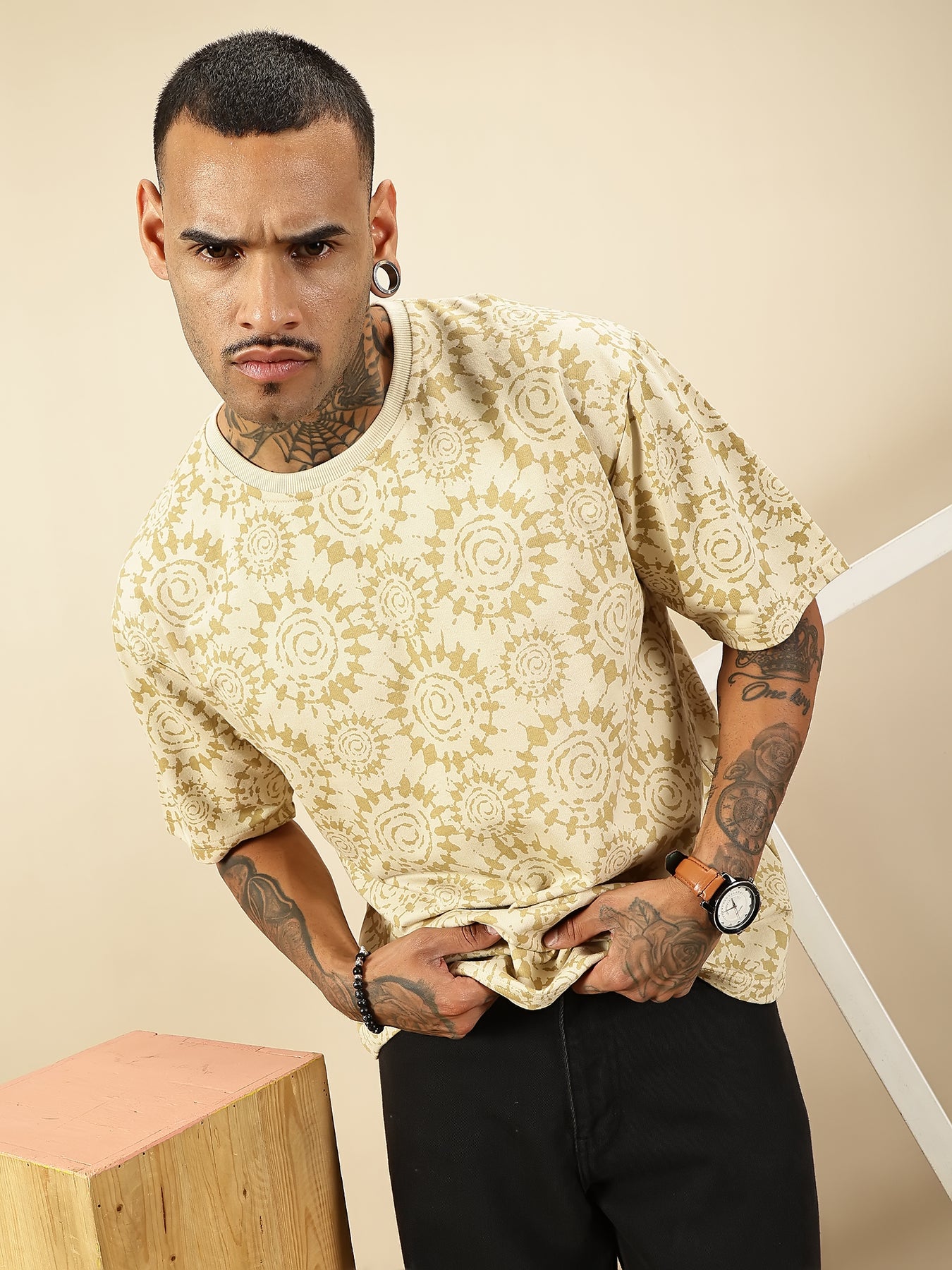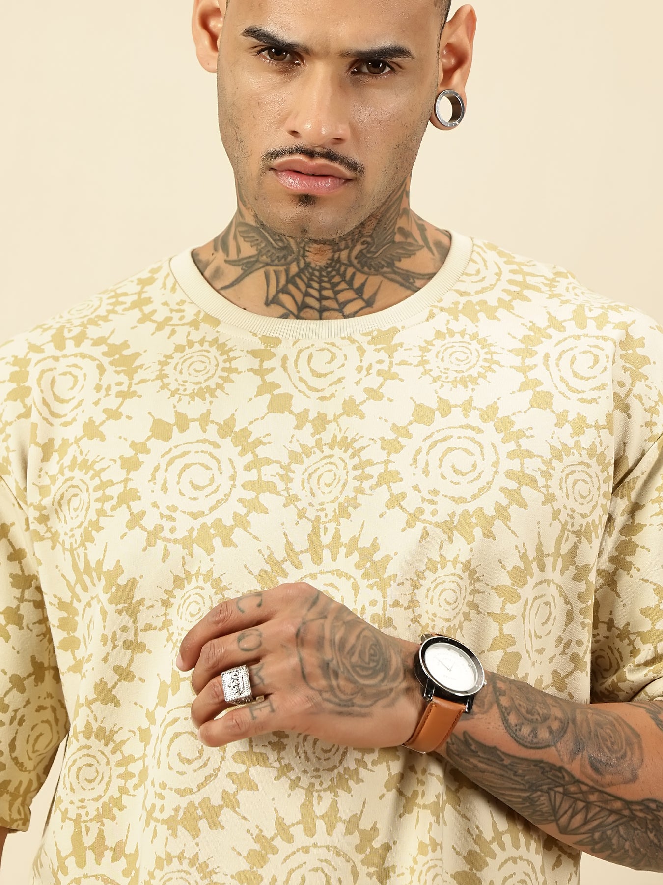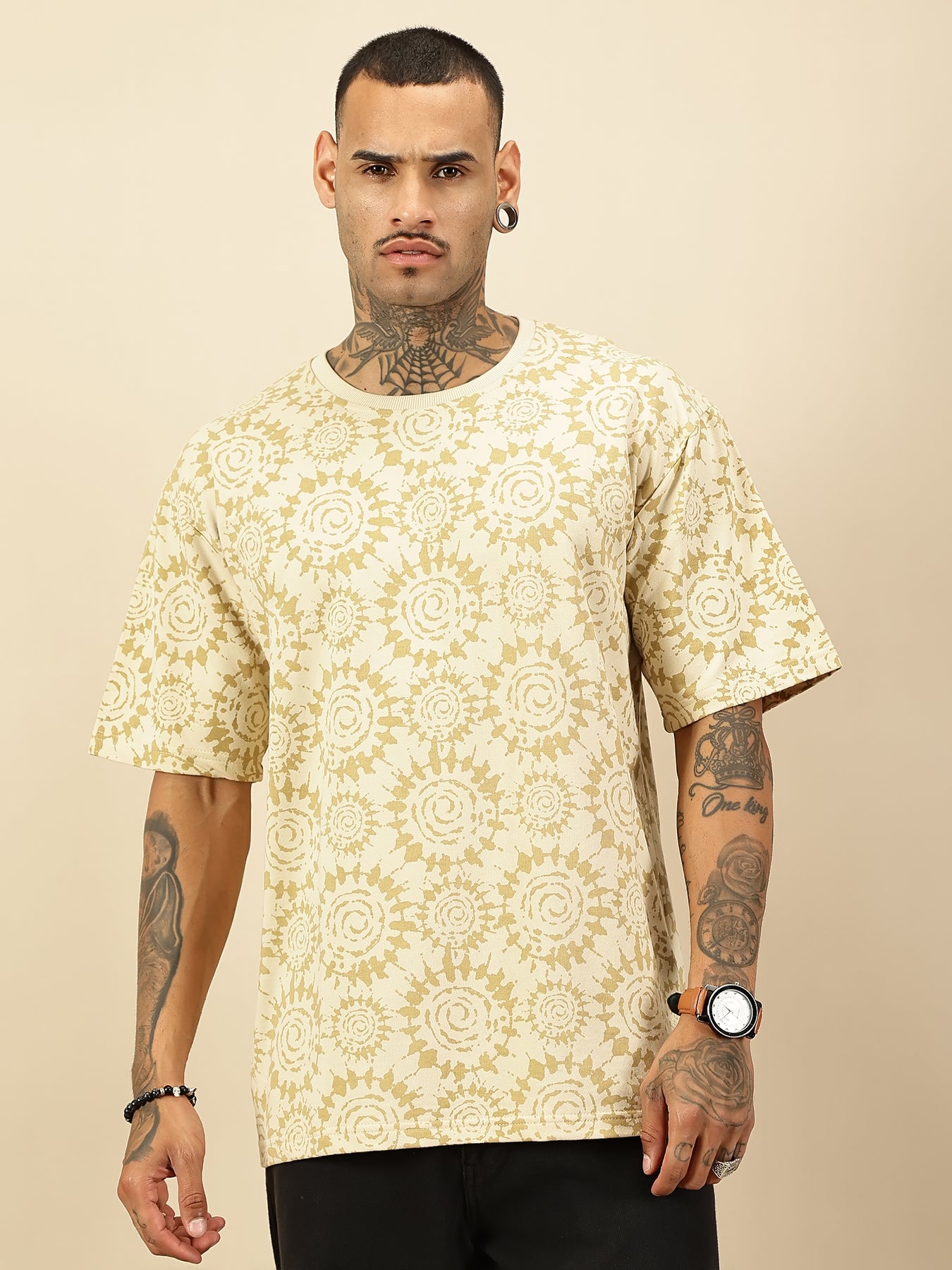 Elevate your casual wardrobe with the Solar Spiral a thoughtfully designed oversized t-shirt that balances comfort with contemporary style. The cream base provides versatility, while the abstract spiral print adds visual interest without overwhelming your look. Crafted for a relaxed fit, this piece works seamlessly with jeans, joggers, or layered styling. Perfect for those who appreciate understated sophistication in everyday wear.