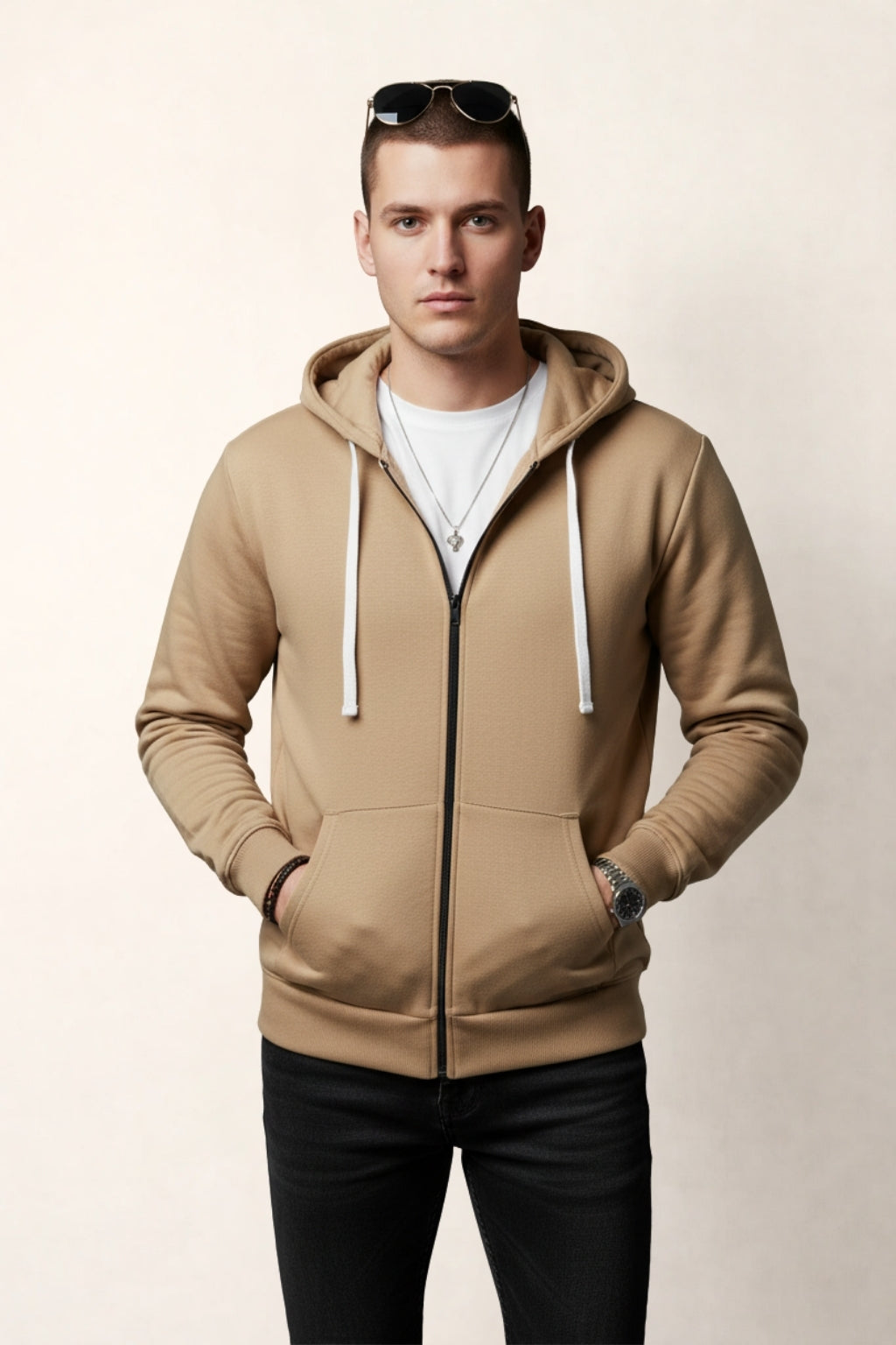 Crafted for versatility and comfort, this khaki zip-up hoodie delivers effortless layering for any season. The full-sleeve design provides warmth without bulk, while the front zip closure allows easy temperature adjustment throughout the day. Premium fabric construction ensures durability through repeated wear and washing. Perfect for casual outings, work-from-home days, or weekend adventures a wardrobe essential that pairs seamlessly with jeans, chinos, or joggers.